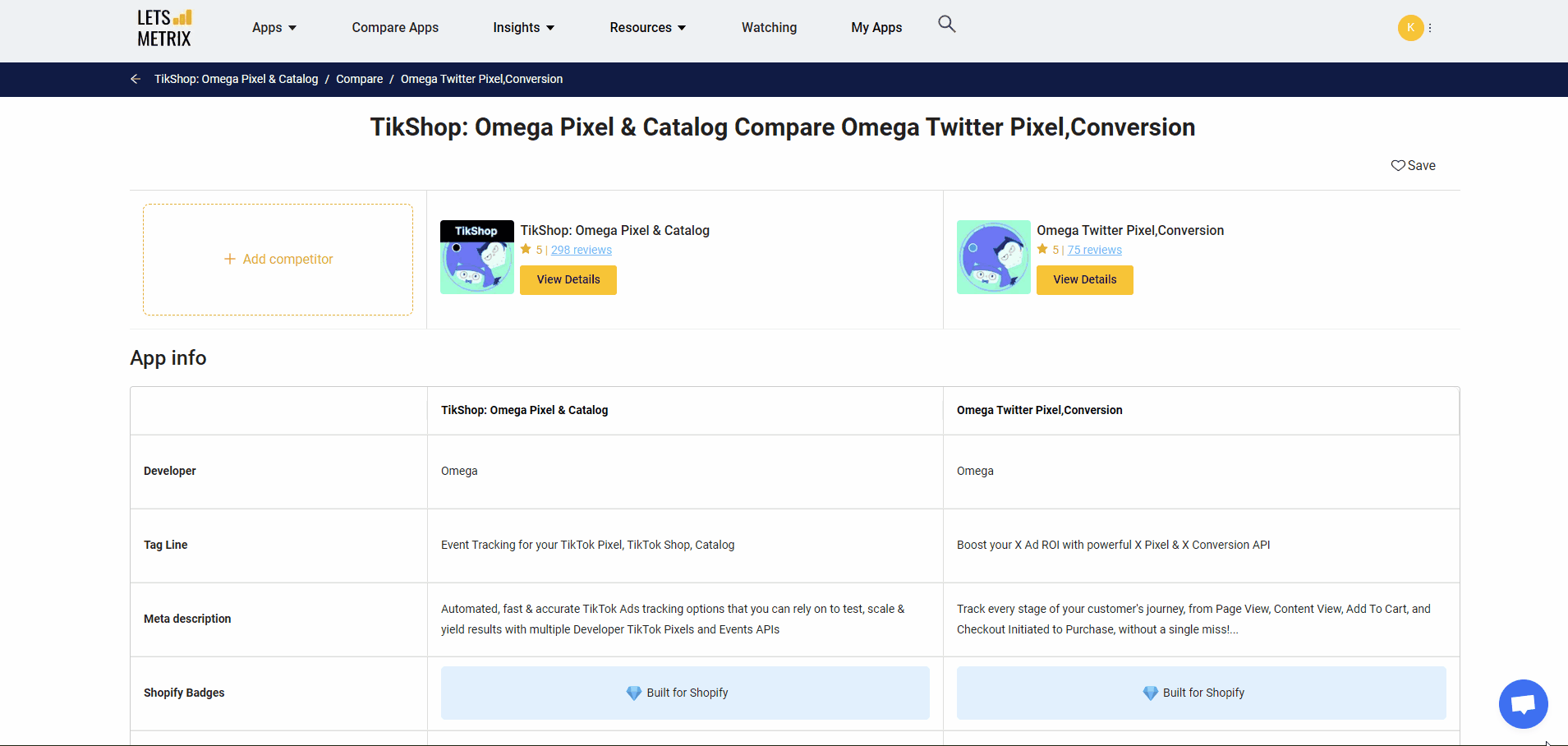 Quickly evaluate Shopify apps side by side to see which ones best meet your business needs or development goals.