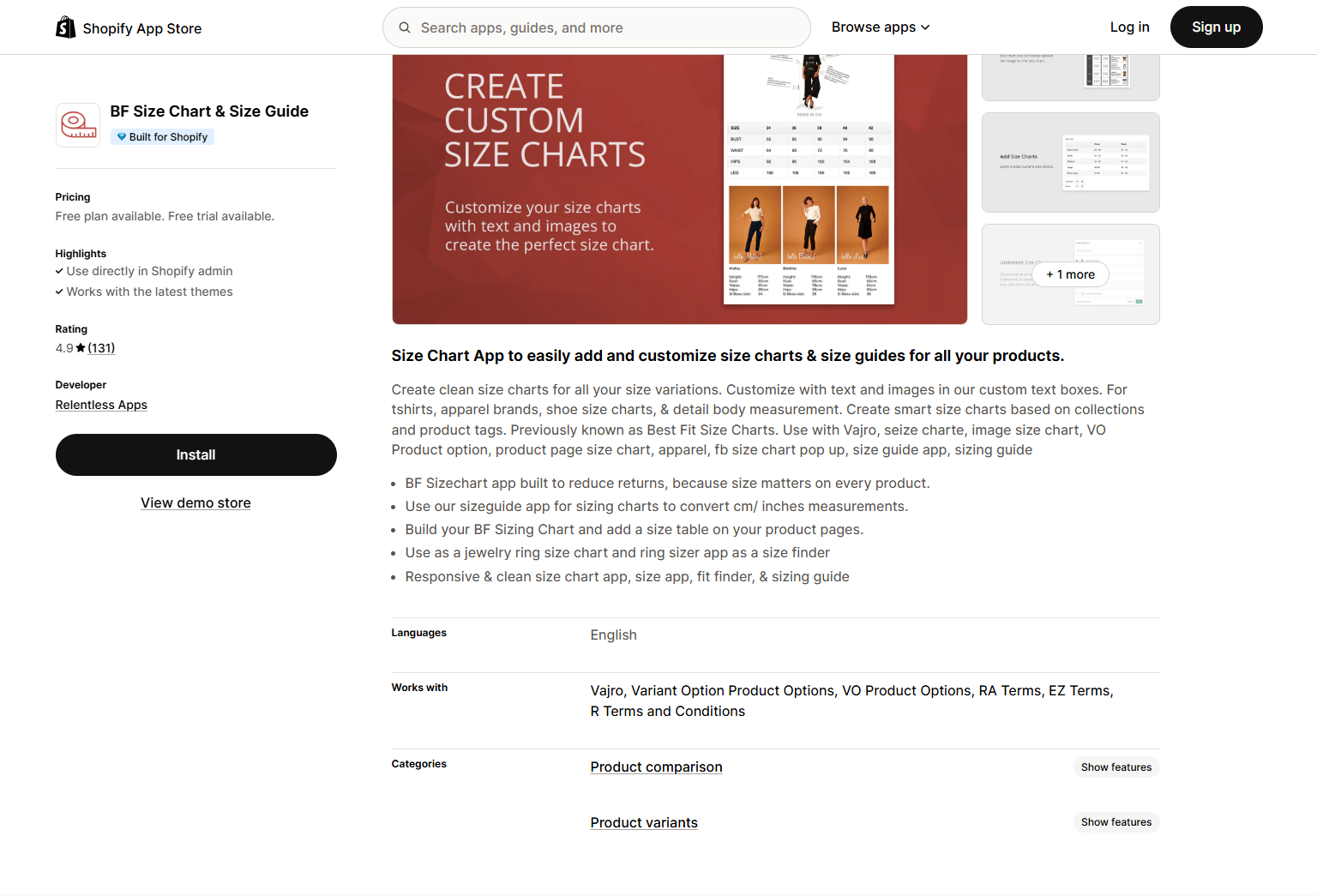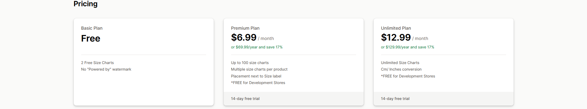 BF Size Chart & Size Guide | Creating custom, responsive size charts for any product. | $6.99/month | Yes | 4.8/5 |