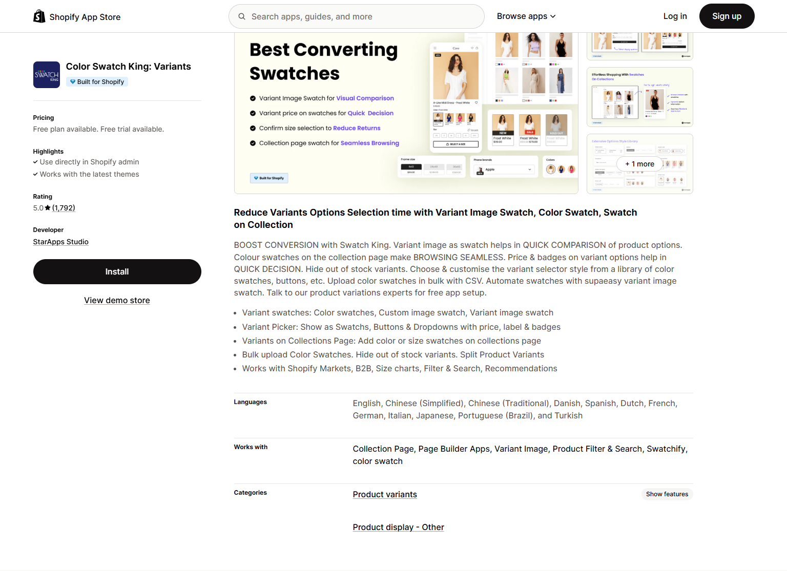 Color Swatch King: Variants | Enhancing collection pages with variant swatches. | $5/month | Yes | 5.0/5 |