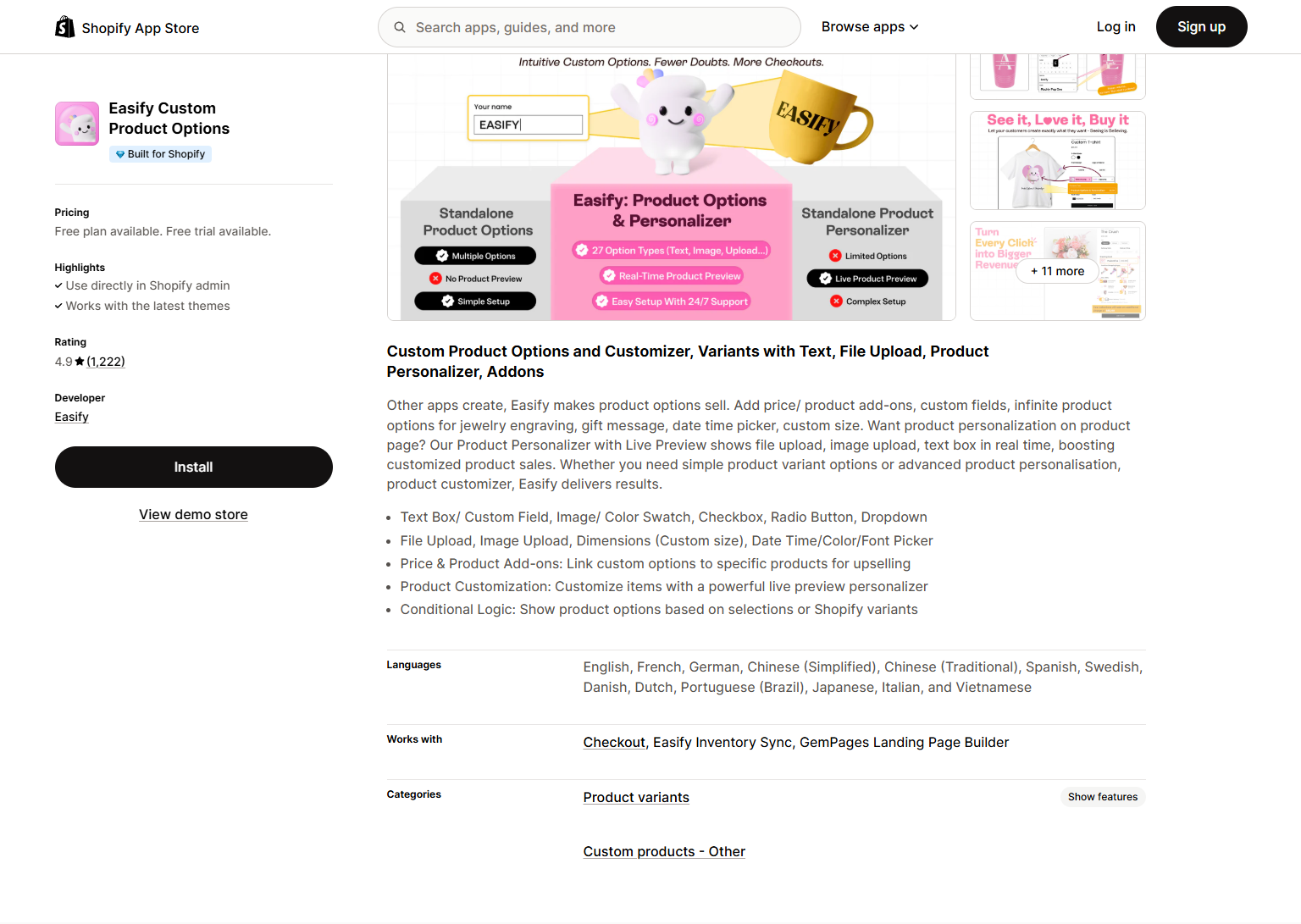 Easify shines with its real-time personalization features, particularly its live preview personalizer. This app is perfect for stores selling items like custom phone cases, t-shirts, or jewelry, where customers want to see their creations come to life before purchasing.