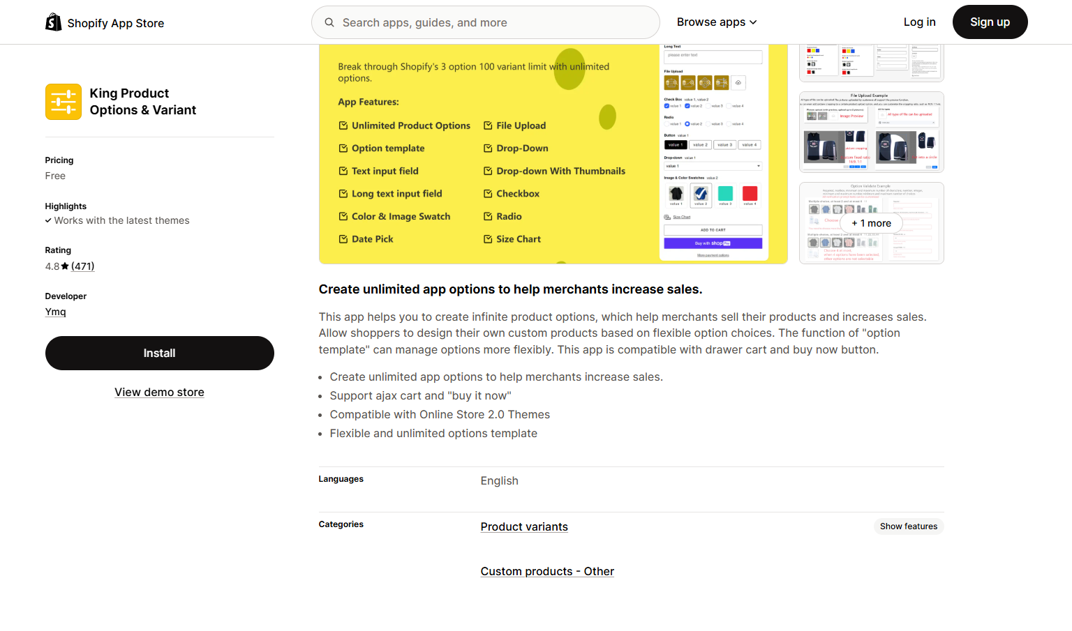 King Product Options is a standout because it offers a robust set of features for creating unlimited product options completely free of charge. It is an excellent choice for new stores or businesses on a tight budget that still require powerful customization capabilities.