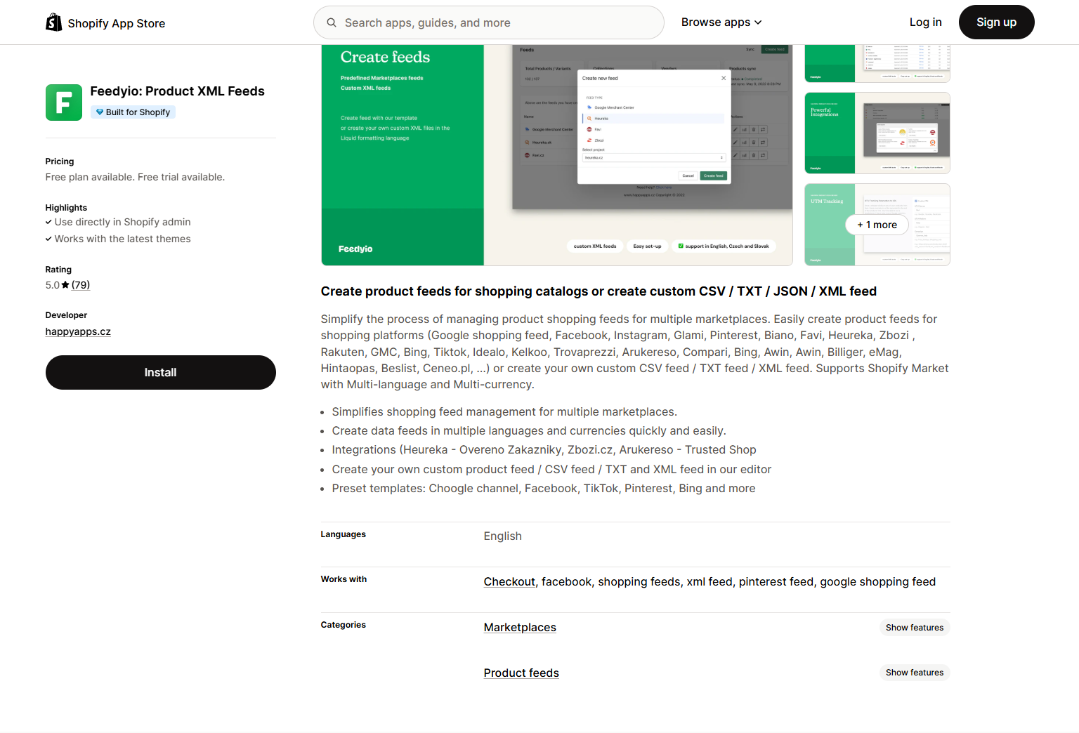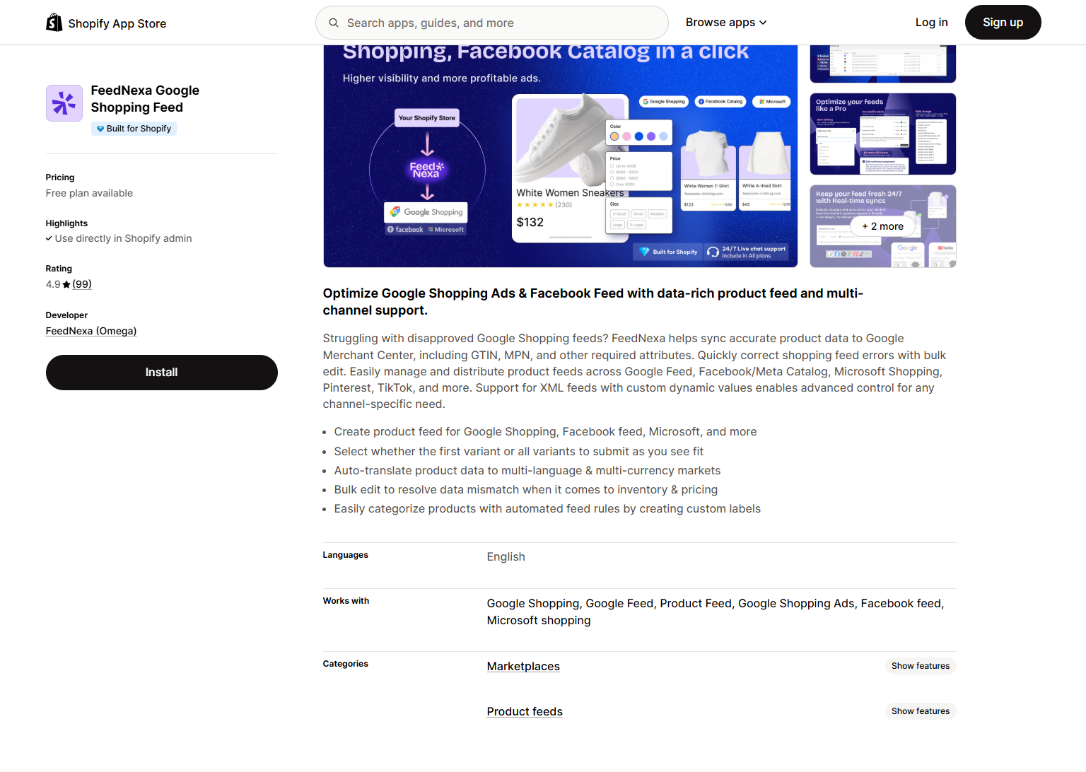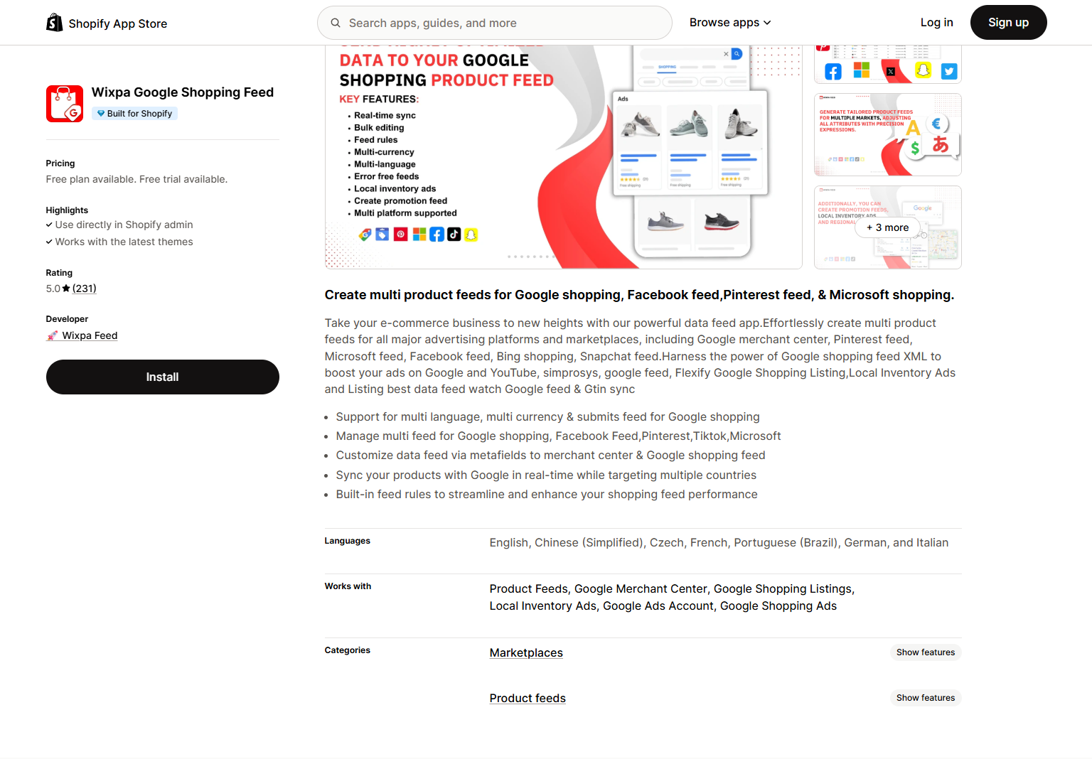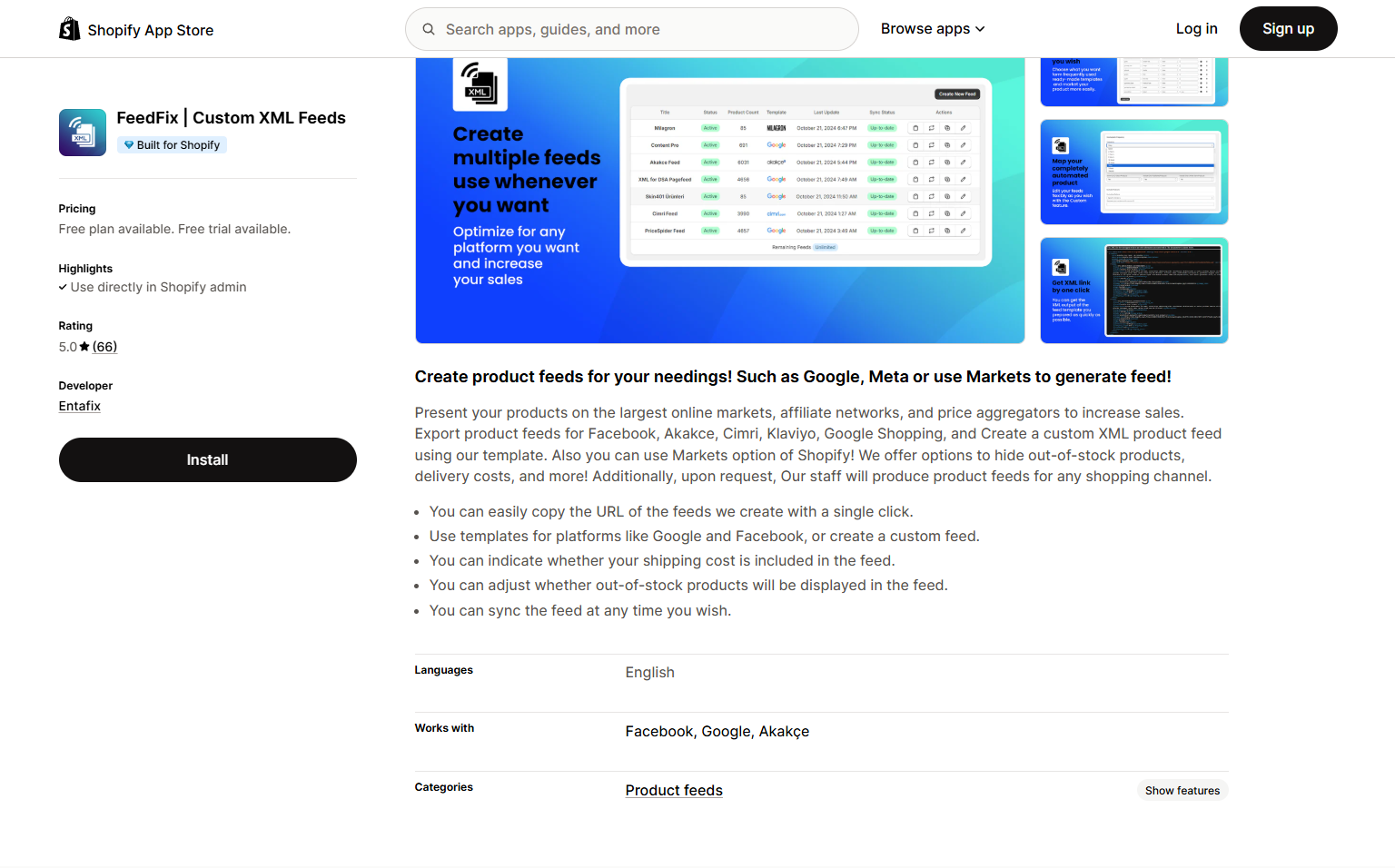 This app offers a complete solution for managing product feeds across a wide array of platforms. It is known for its extensive support for localization and integration with other Shopify tools.