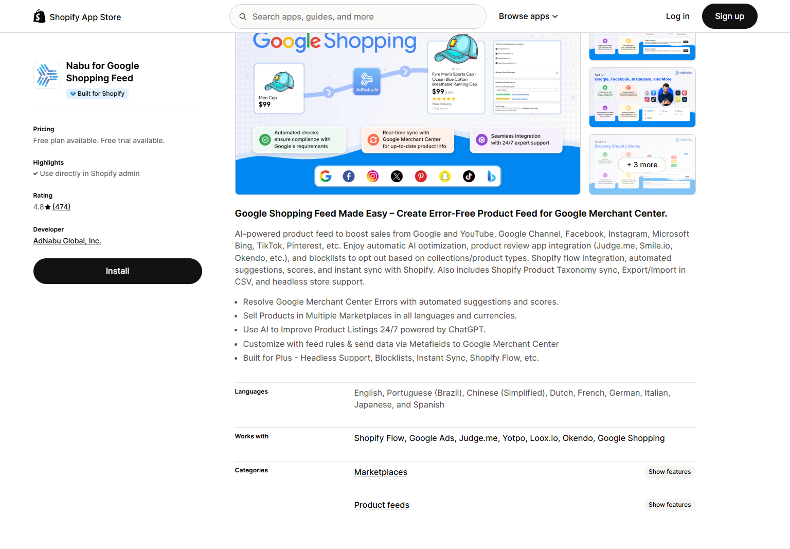 Nabu for Google Shopping Feed | AI-driven optimization and error resolution | $39.99/month | Yes | 4.8/5 |