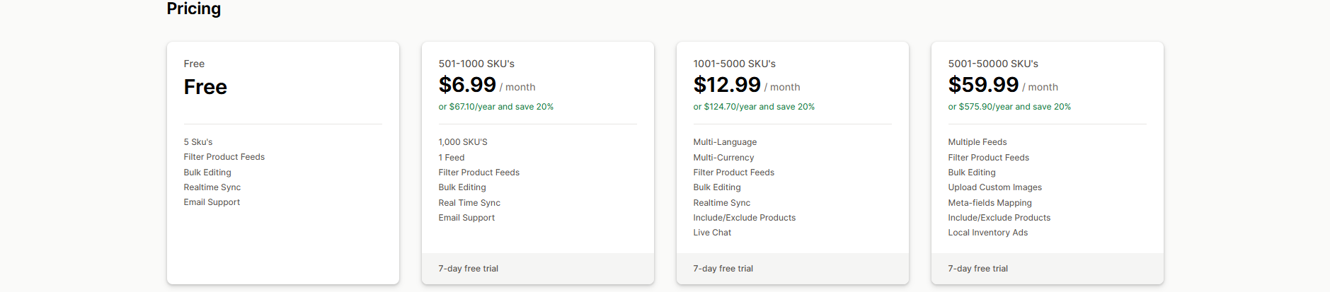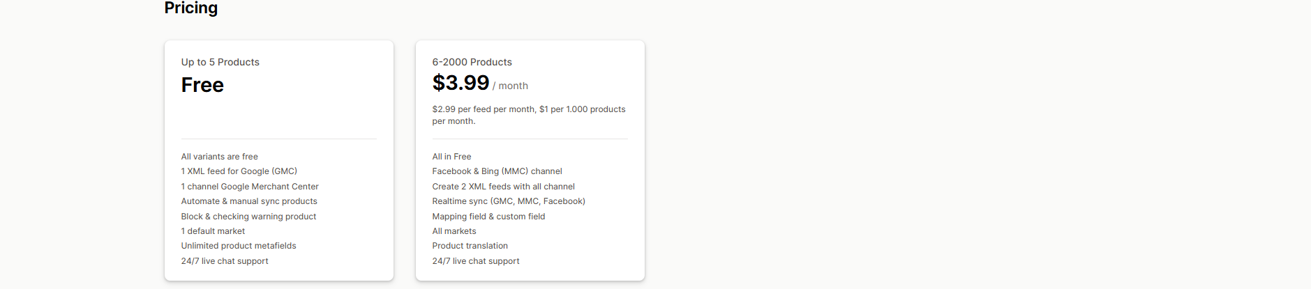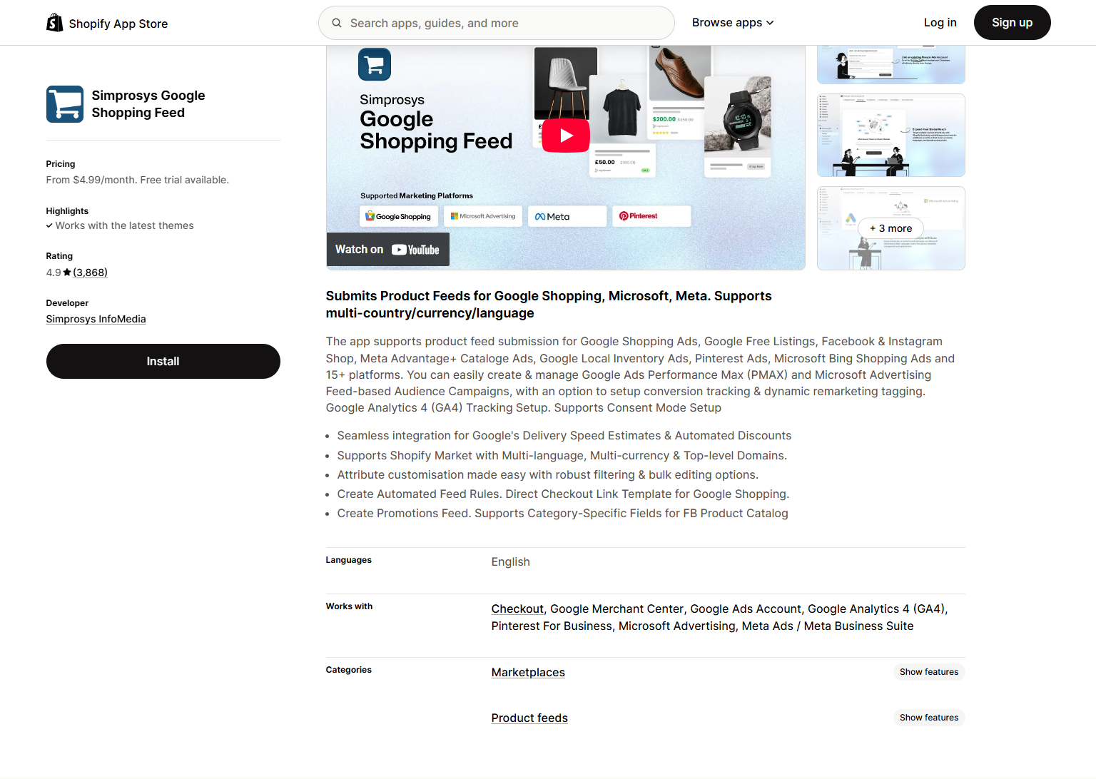 Simprosys Google Shopping Feed | Advanced Google Shopping & ad features | $4.99/month | No | 4.9/5 |