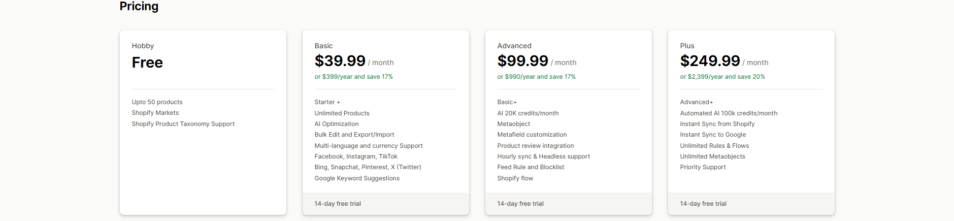 Free plans can be sufficient for small stores with a limited number of products and basic needs. They often allow you to create a simple feed for a single channel. However, as your business grows, you will likely need the advanced features of paid plans, such as support for more products, additional channels, custom rules, and dedicated customer support.