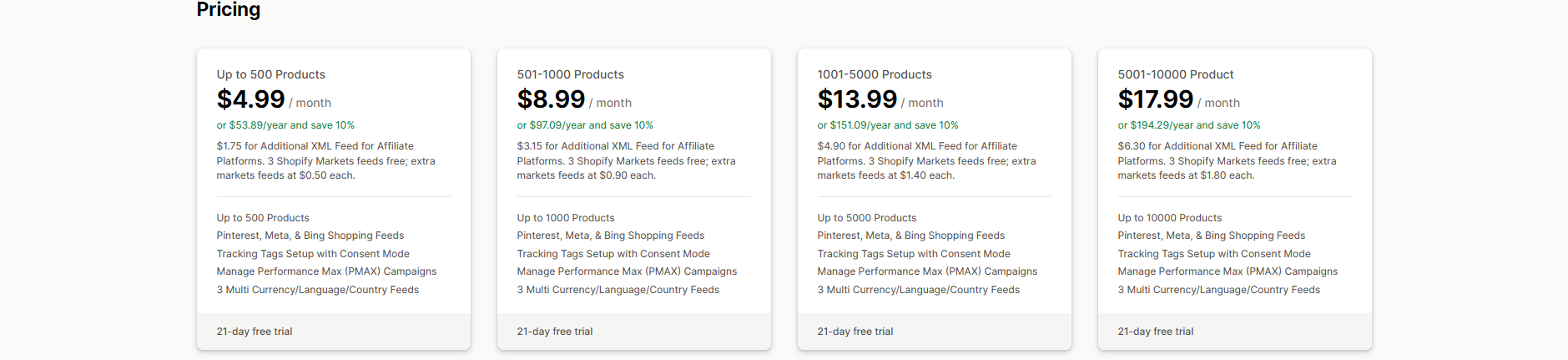 Feedyio: Product XML Feeds | Custom feeds and European market focus | $9.99/month | Yes | 5.0/5 |