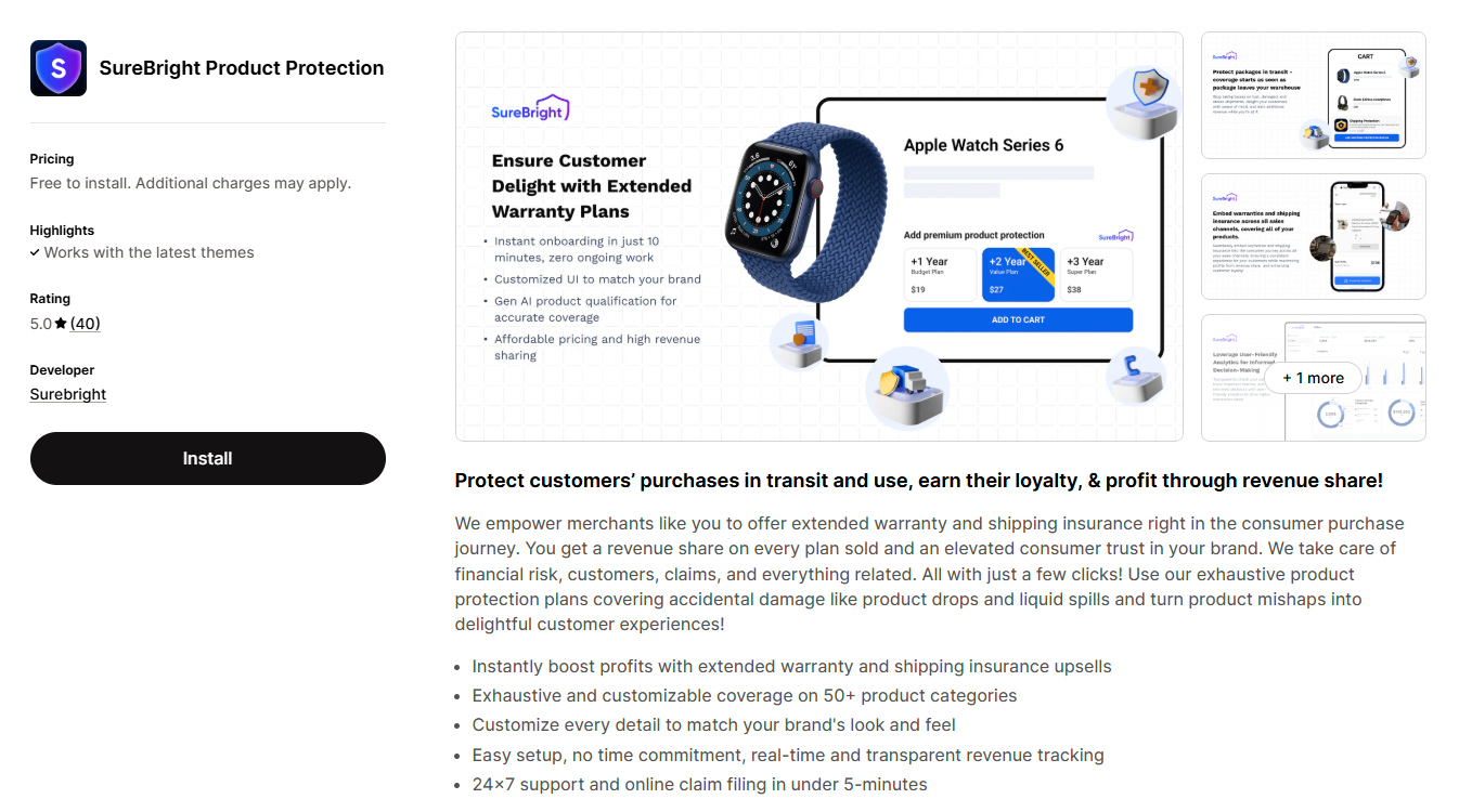 SureBright Product Protection | Offering both extended warranties and shipping insurance. | Free to install | Yes | 5.0 |