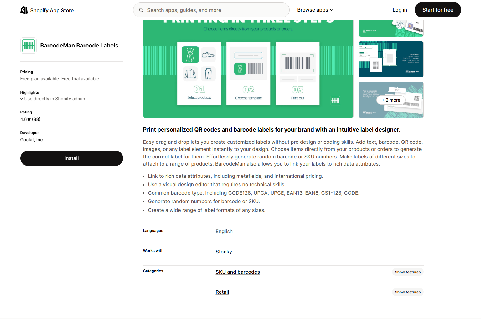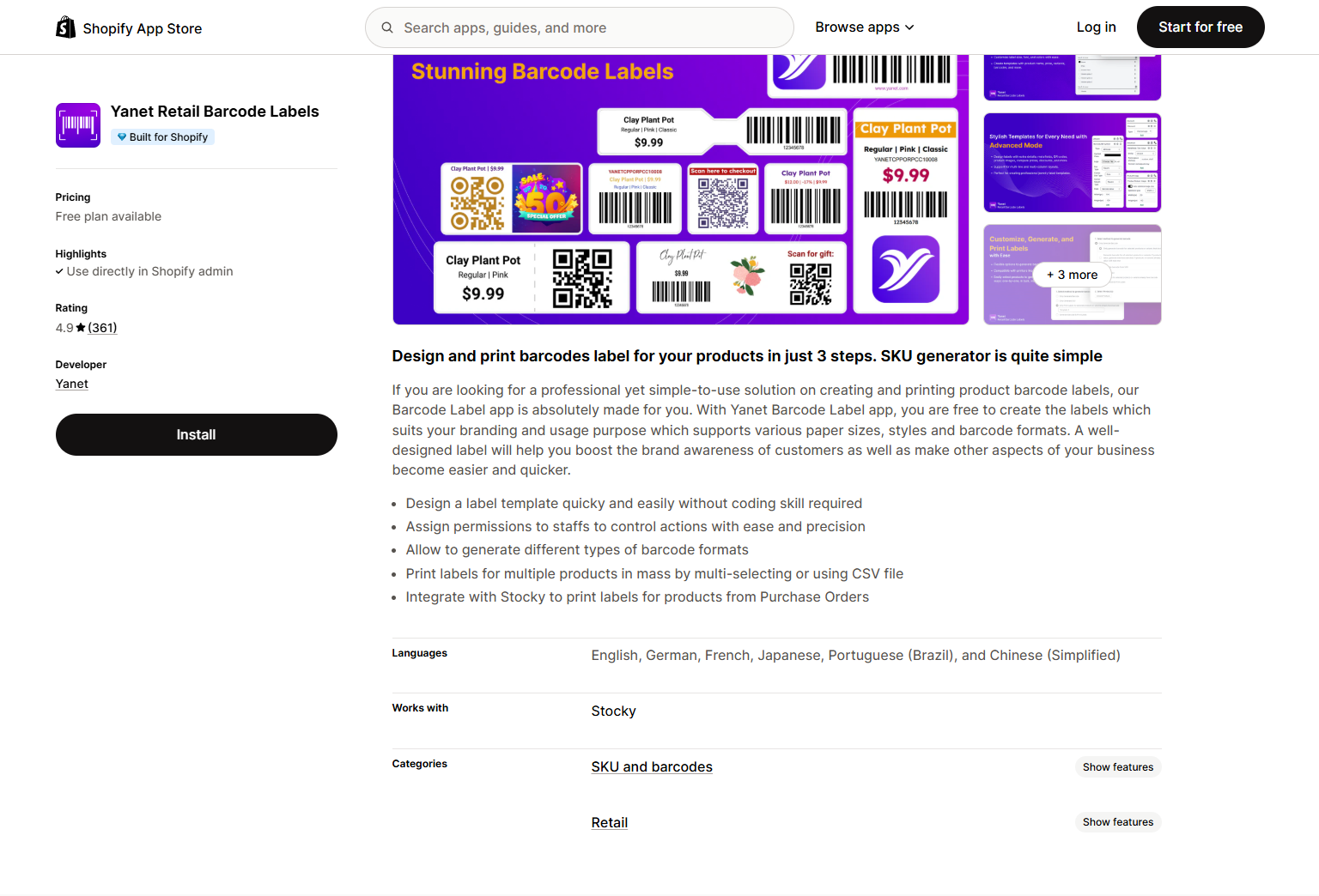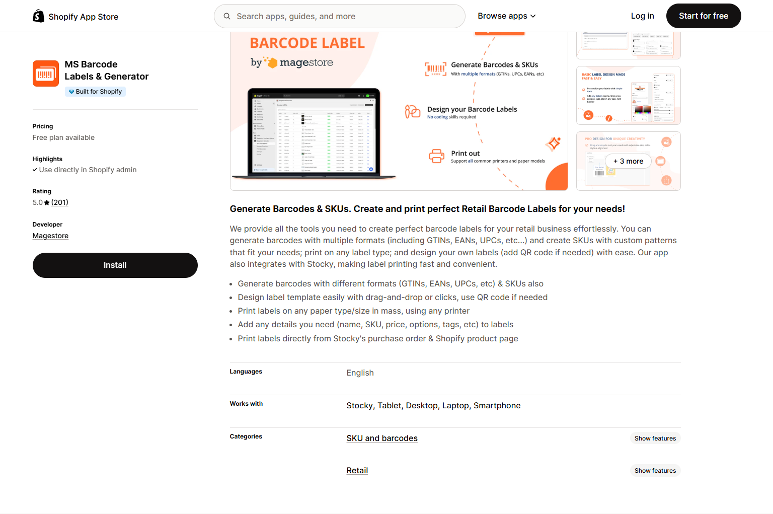 This app is a top-rated choice for merchants seeking a comprehensive solution for barcode and label creation. It excels with a user-friendly interface and robust features that cater to a wide range of business needs.