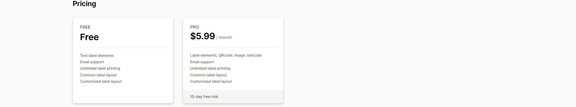 Pricing: Offers a free plan for 200 labels per month. Paid tiers begin at $7.99/month, with options for annual savings.