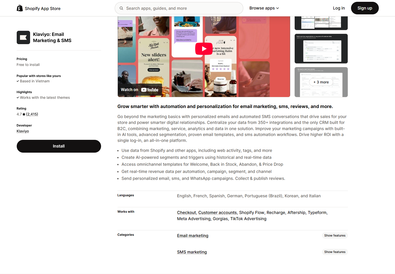 - Integrations: Consider how well the app integrates with your existing marketing stack. An app like Klaviyo, with its 350+ integrations, can centralize your data for more powerful and consistent marketing efforts.