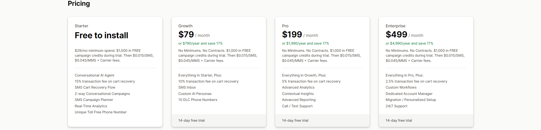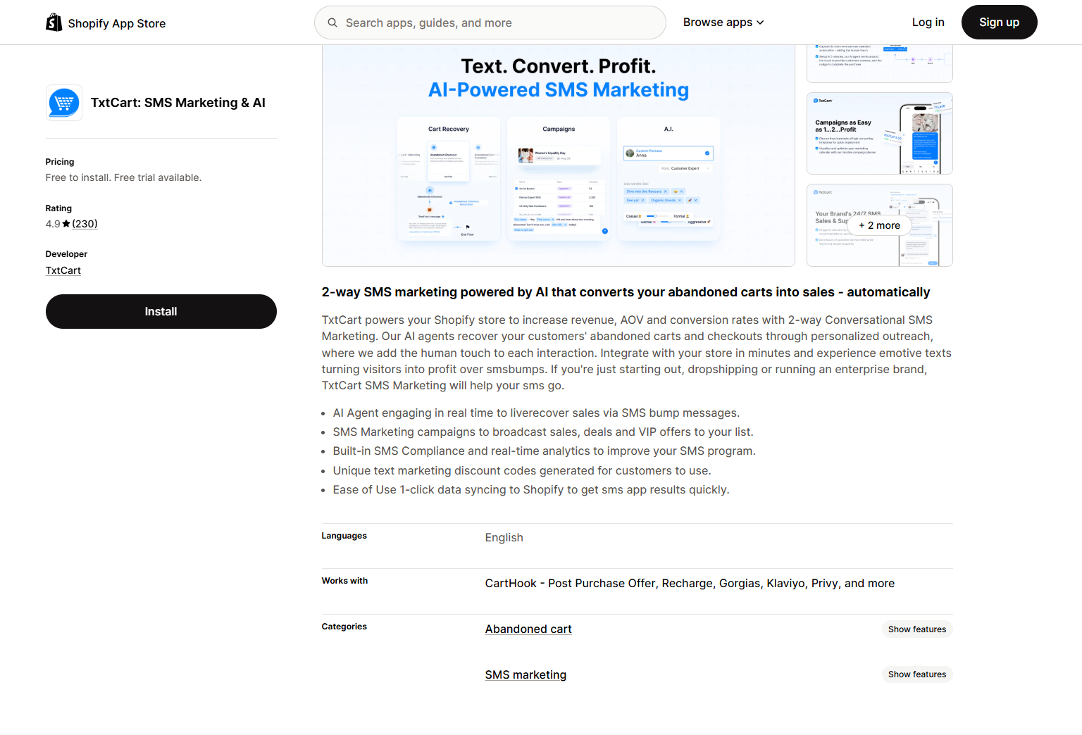TxtCart: SMS Marketing & AI | Conversational AI and cart recovery | $79/month | Yes | 4.9/5 |
