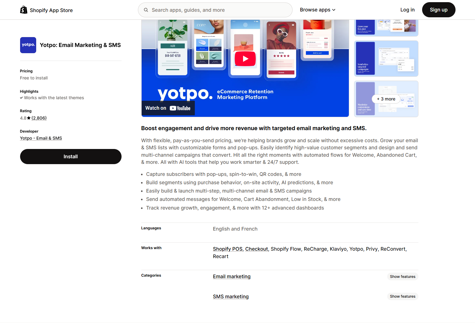 Yotpo excels at helping brands grow their subscriber lists and convert them with targeted messaging. It combines list-building tools with AI predictions to create highly effective, multi-channel campaigns.