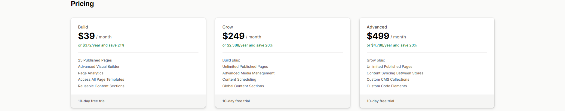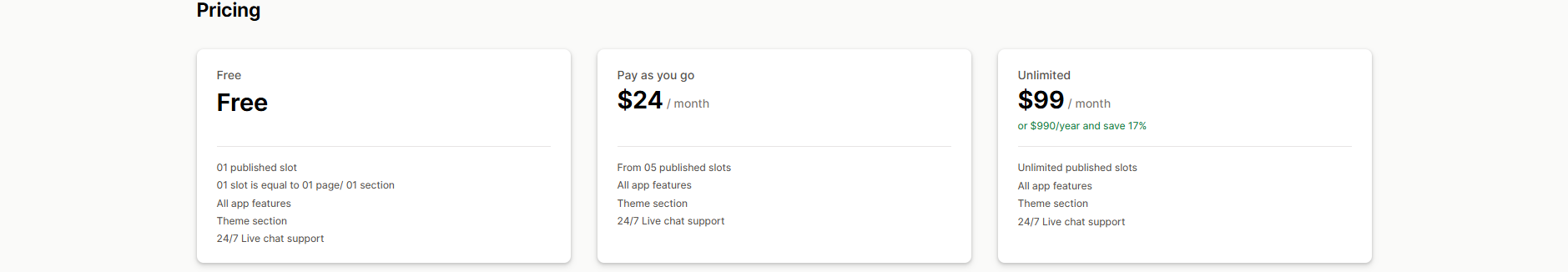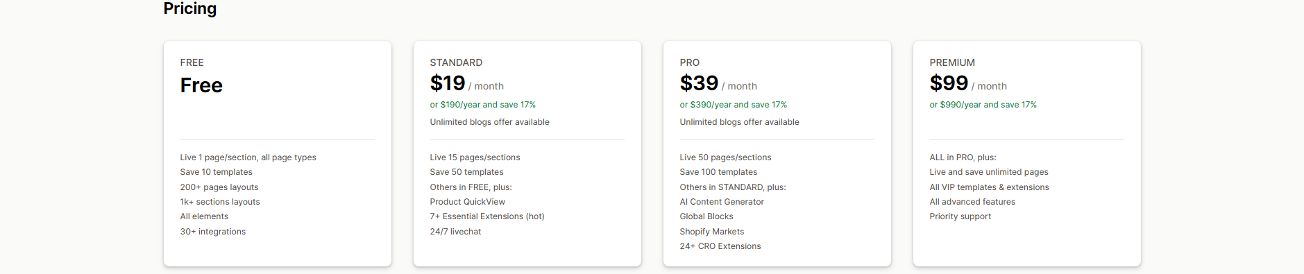 Shogun ‑ Landing Page Builder | Flexible page & theme section builder | $39/ $249/ $499 | No | 4.8/5 from 1999 reviews |