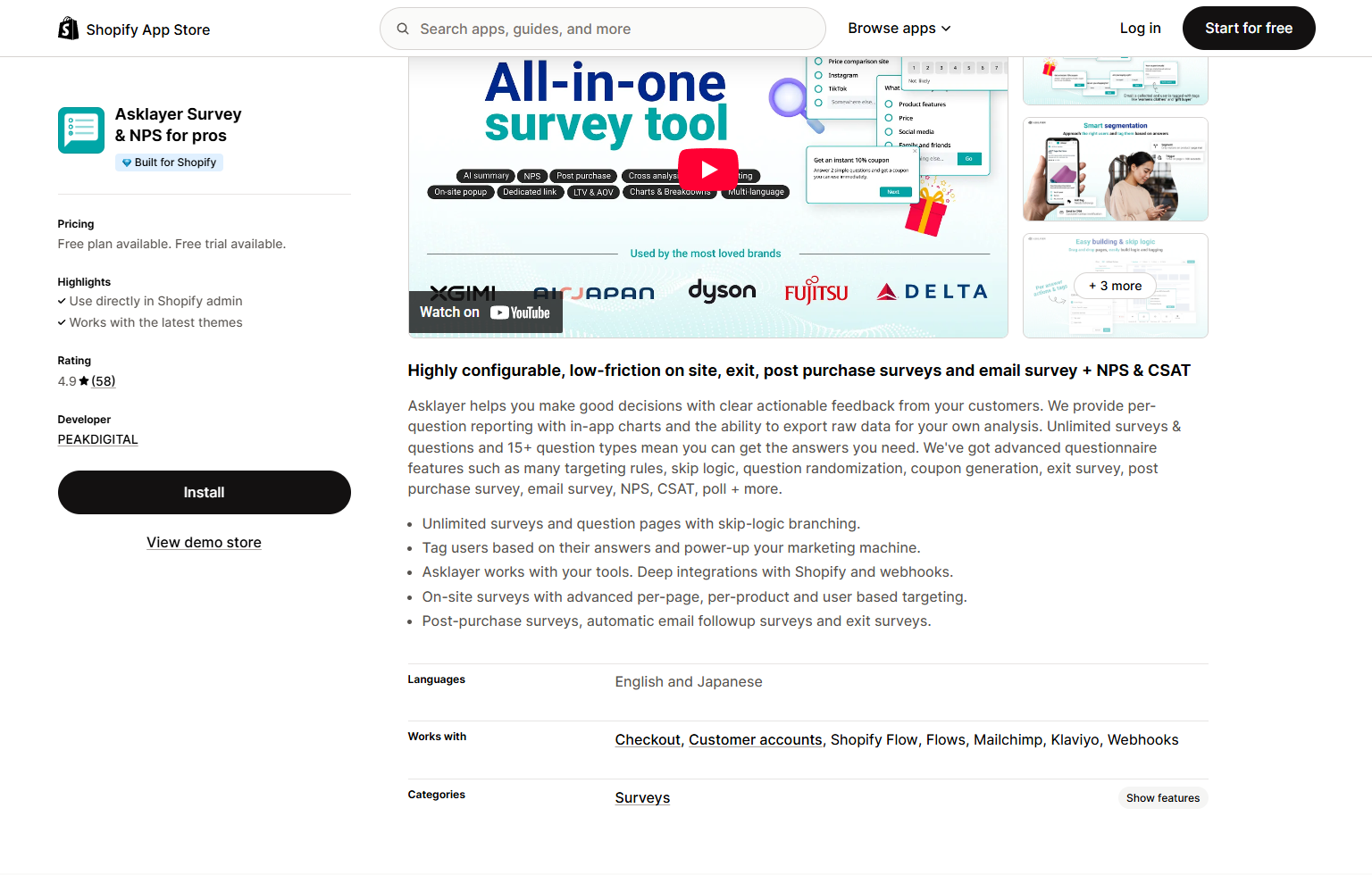 Asklayer Survey & NPS for pros | Advanced feedback collection with detailed targeting. | $0 | Yes | 5.0 |