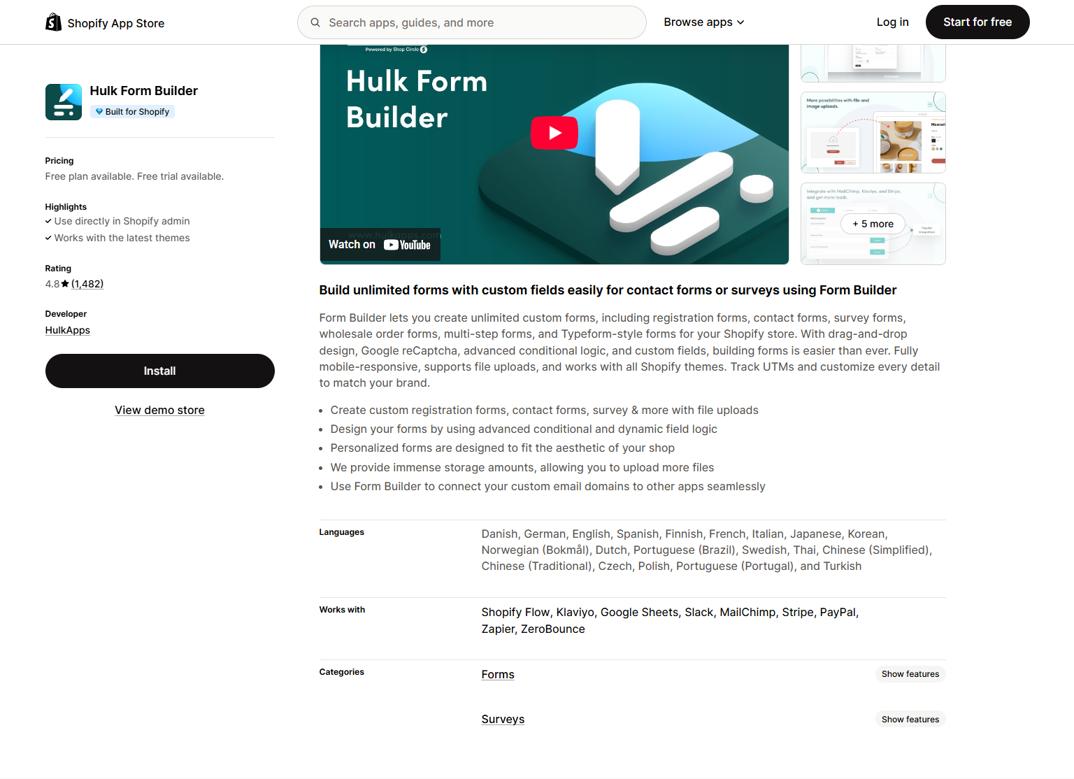 Hulk Form Builder | Building responsive, multi-step forms and surveys. | $0 | Yes | 4.8 |