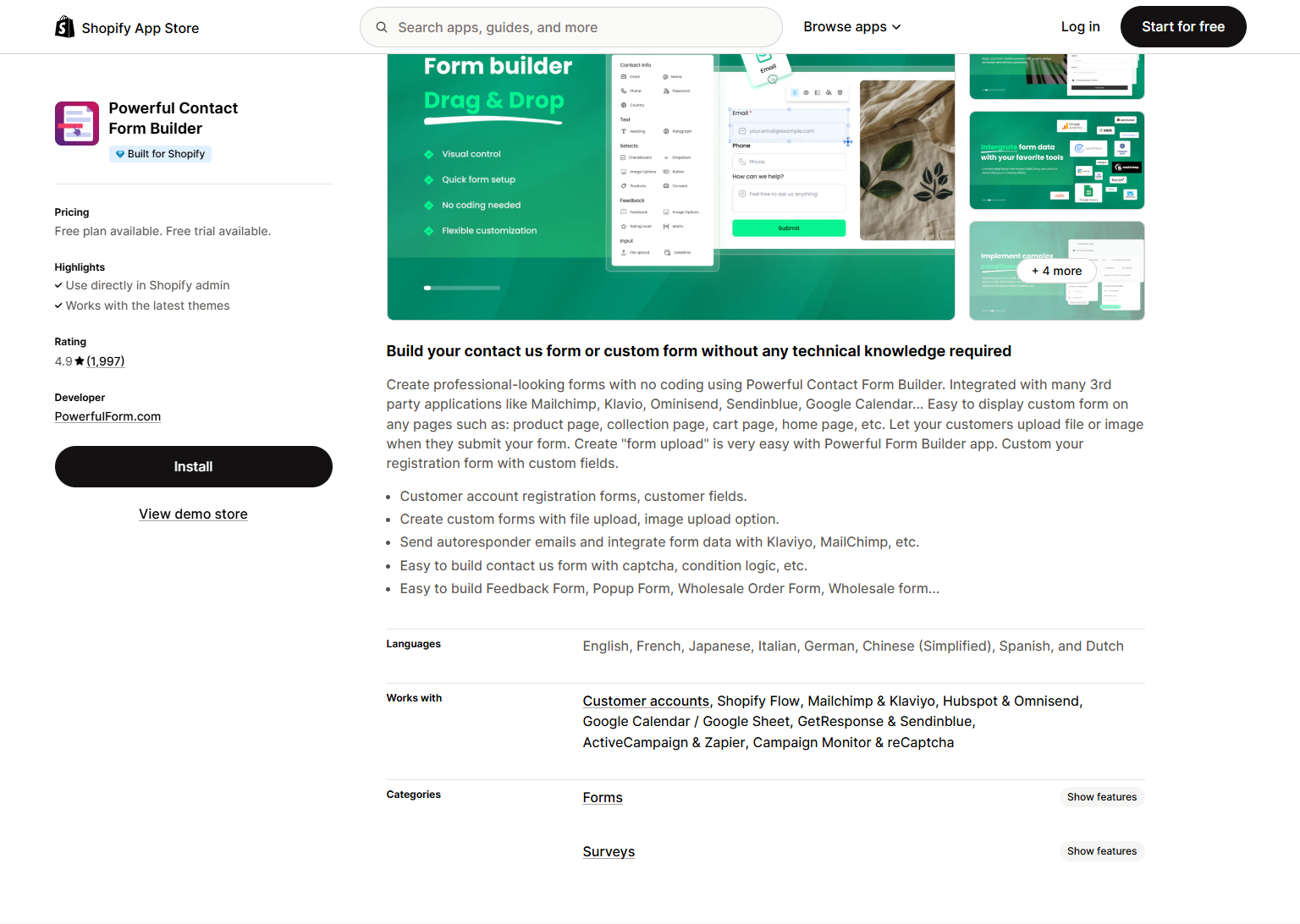 SK: Form Builder is an essential tool for stores that rely on data automation and targeted marketing campaigns. It excels at integrating with key marketing and data management services.