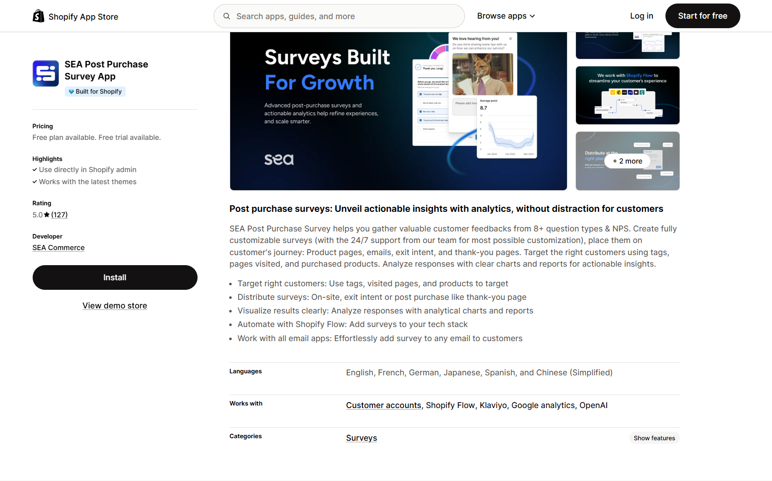 SEA Post Purchase Survey App | Gathering post-purchase feedback and NPS scores. | $0 | Yes | 4.9 |