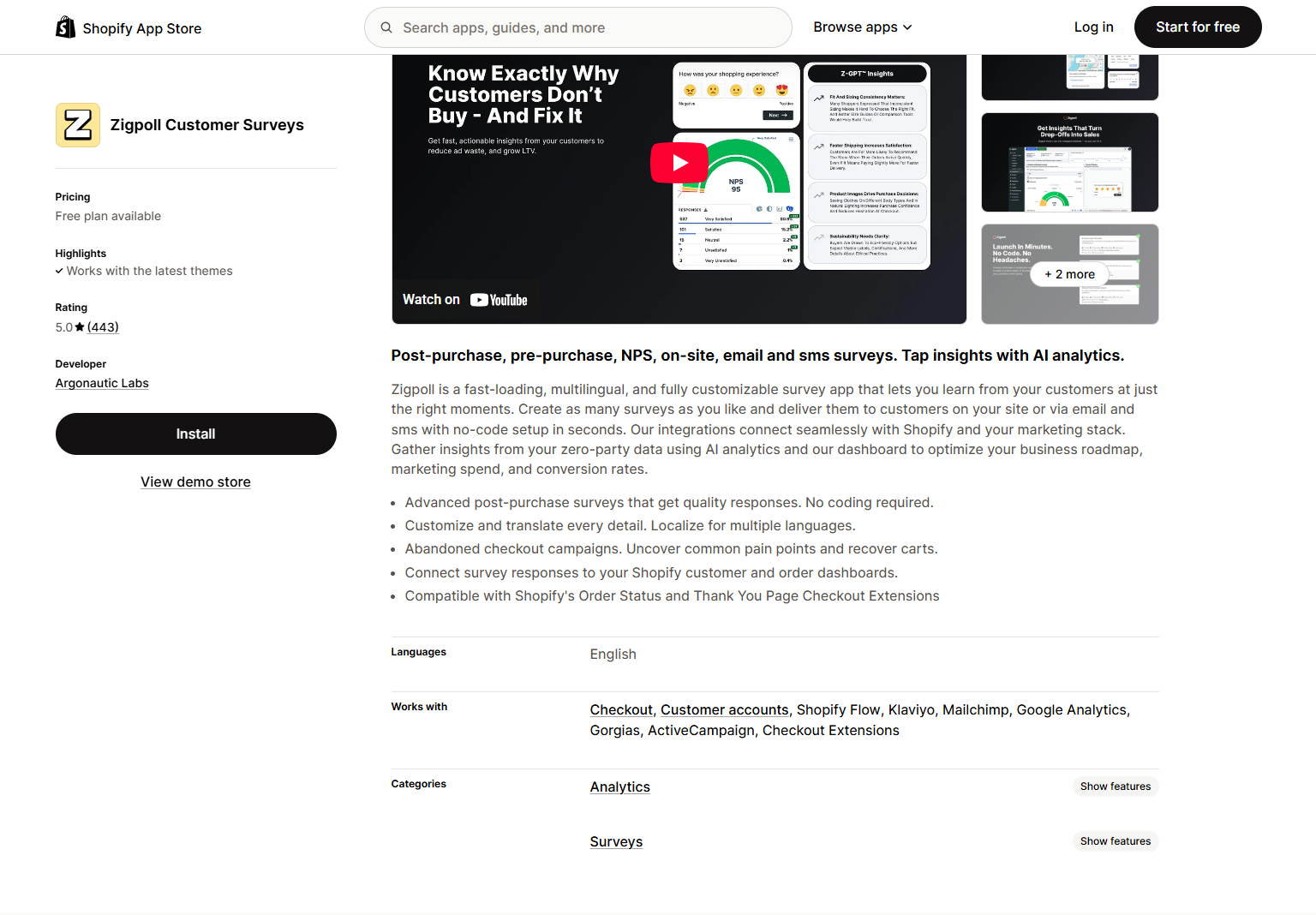 Zigpoll Customer Surveys | Deploying multi-language surveys for customer insights. | $0 | Yes | 5.0 |