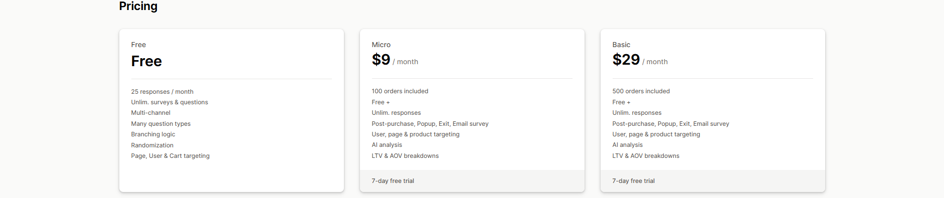 Pricing: A free plan is available for 25 responses / month. Paid plans start at $9/month.