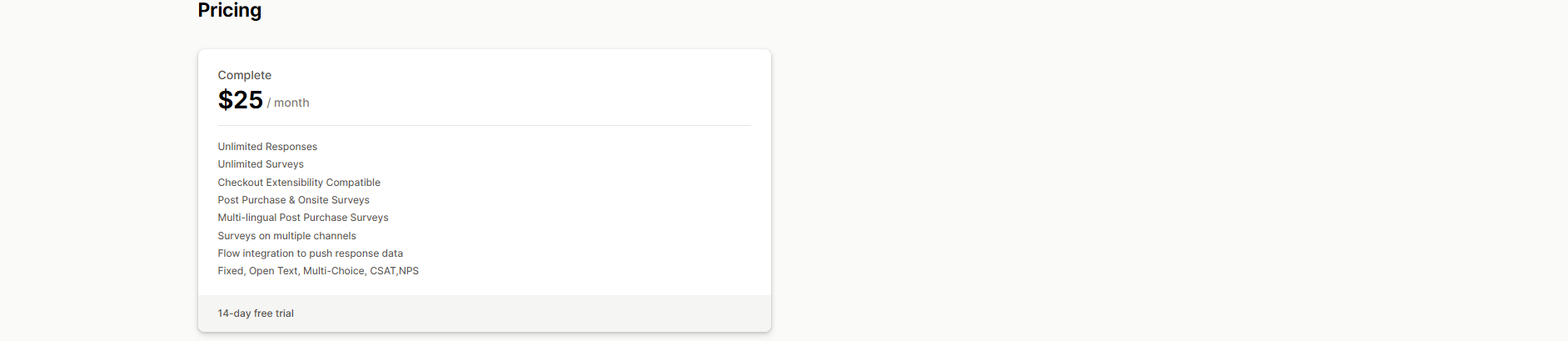 - Specialized surveys for post-purchase feedback and abandoned cart recovery.
