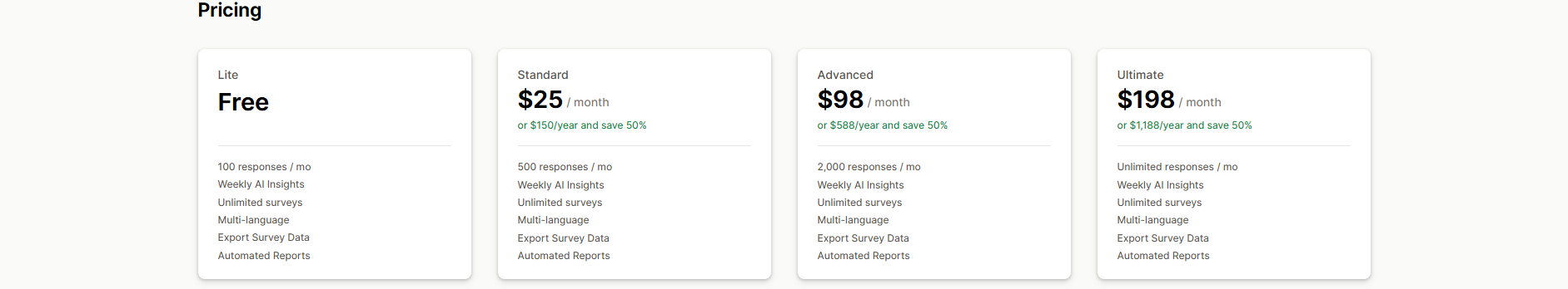 - Unlimited responses on all plans.