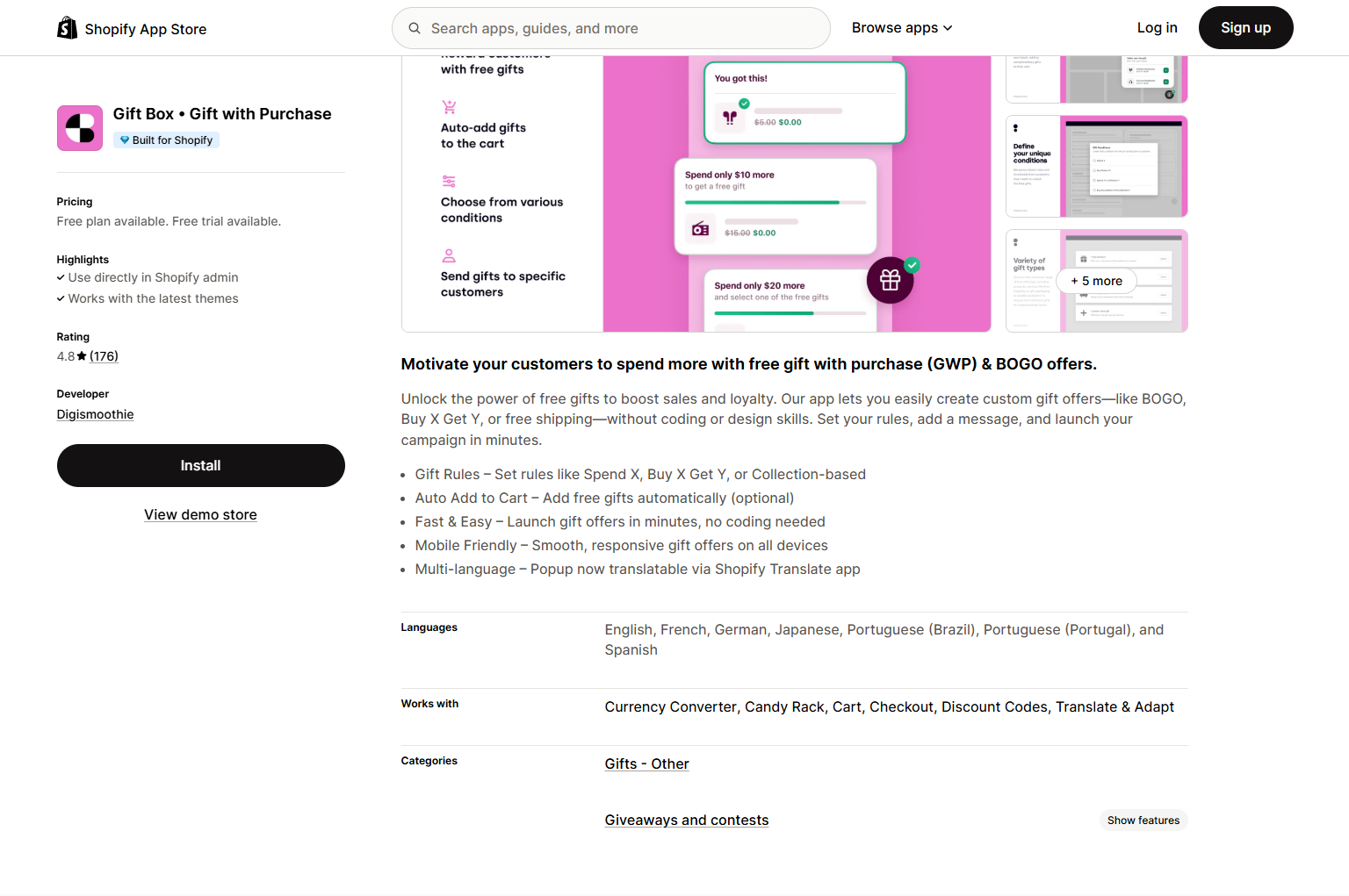 Gift Box • Gift with Purchase | Offering free gifts with purchases | $29.99/month | Yes | 4.8/5 |