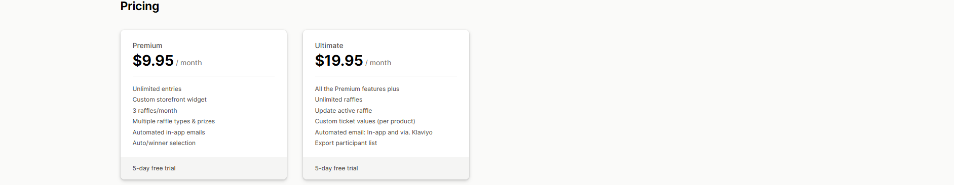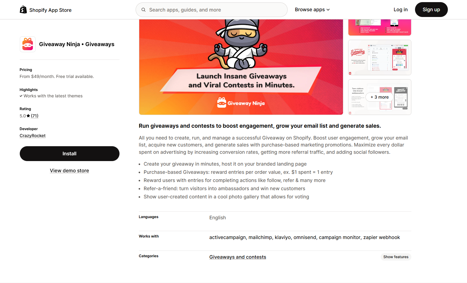 Giveaway Ninja • Giveaways | Purchase-based promotions and referral marketing | $49/month | No | 5.0/5 |