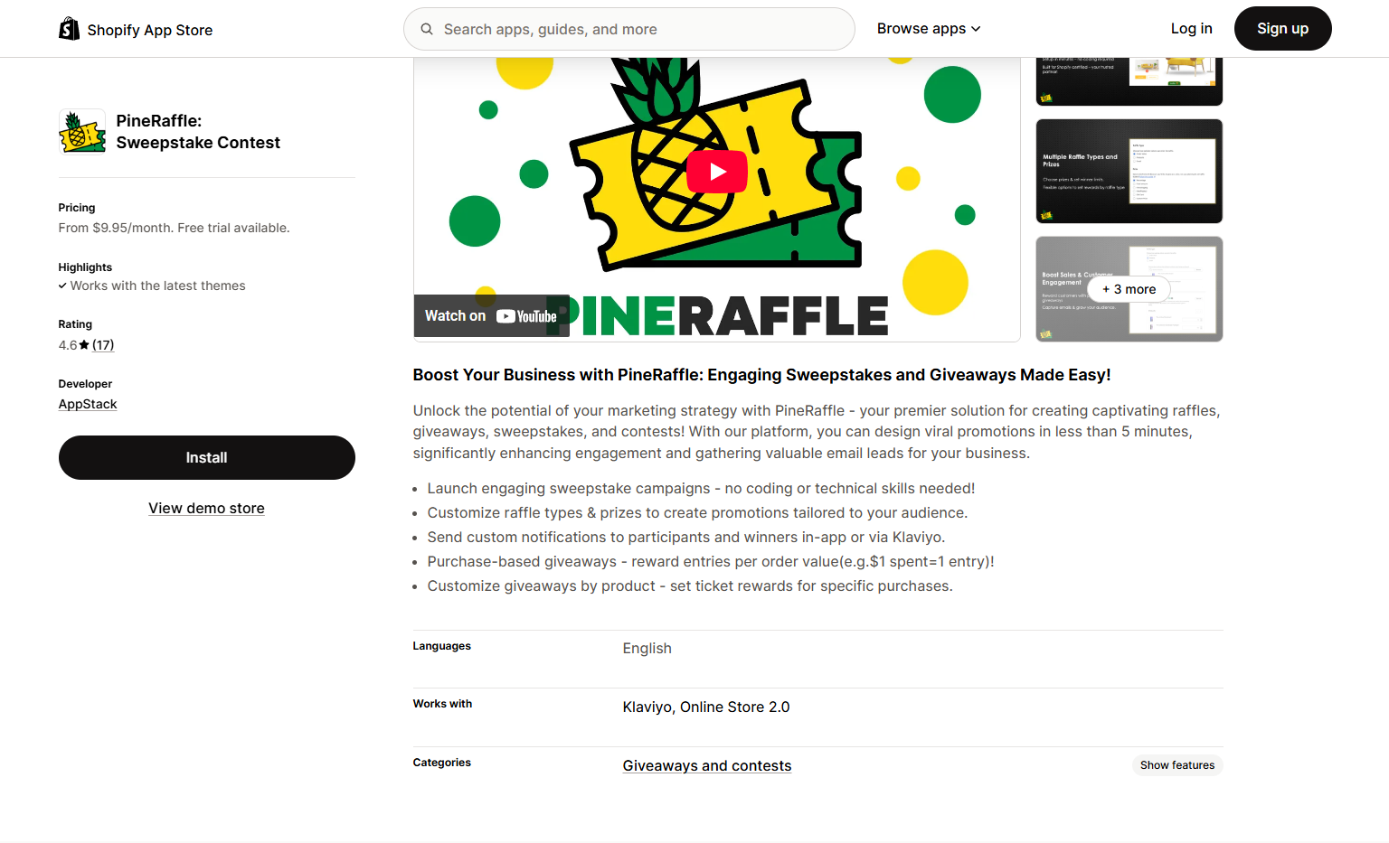 PineRaffle simplifies the process of creating engaging sweepstakes, raffles, and giveaways. It allows for easy customization and rewards customers based on their purchases.