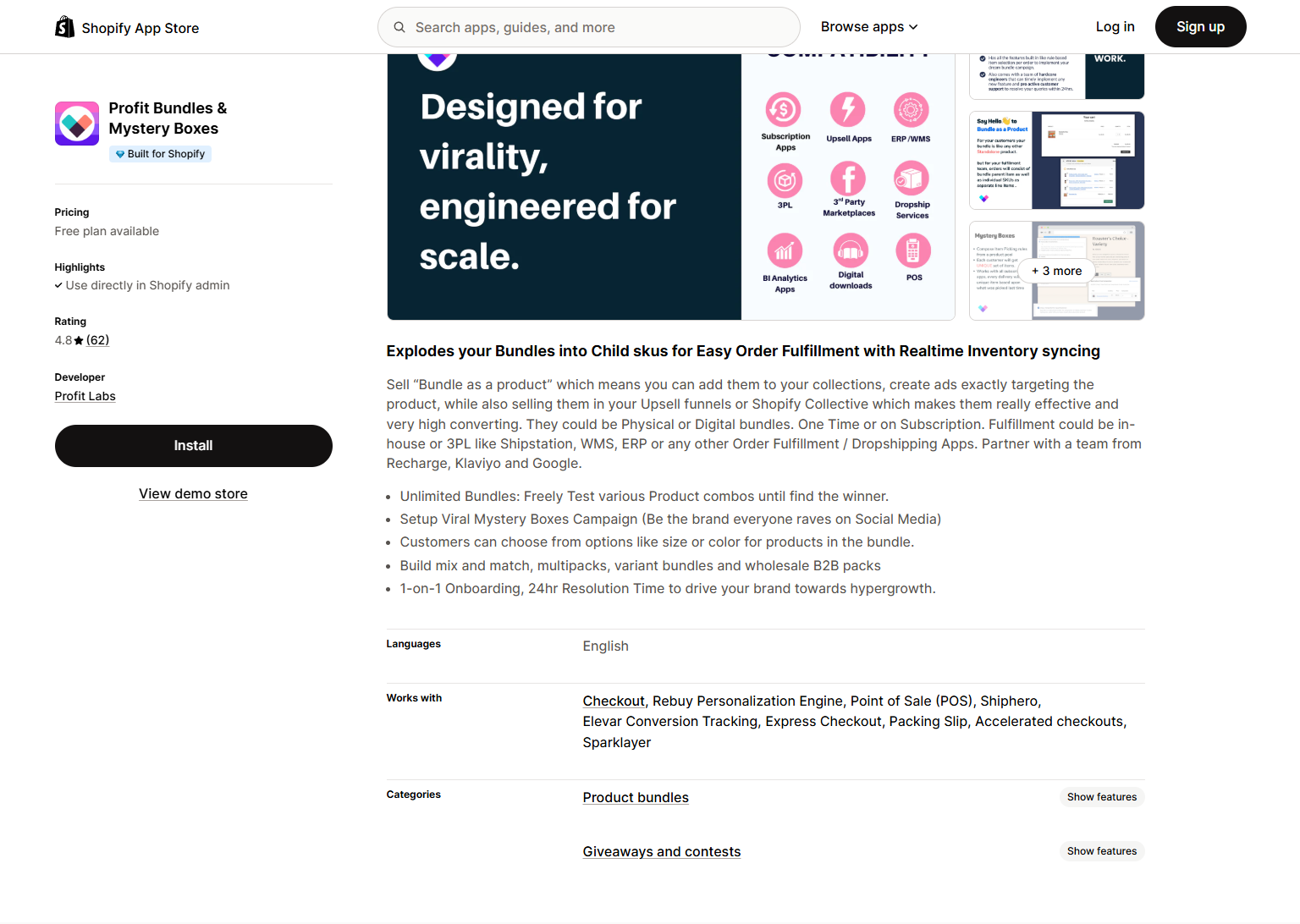 Profit Bundles & Mystery Boxes | Creating product bundles and mystery box campaigns | $14.99/month | Yes | 4.9/5 |