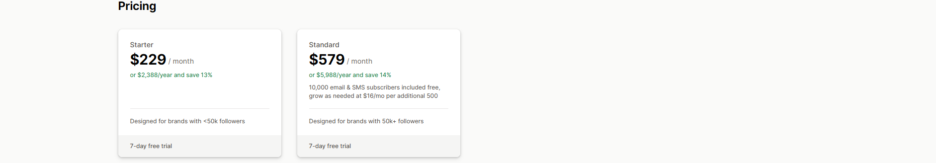 - Campaigns that integrate with loyalty platforms like Smile and Yotpo.