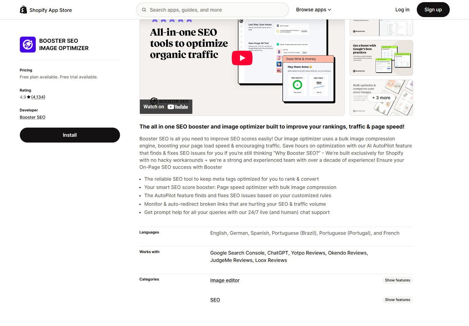 This app offers a wide array of tools to boost search engine rankings and page performance.