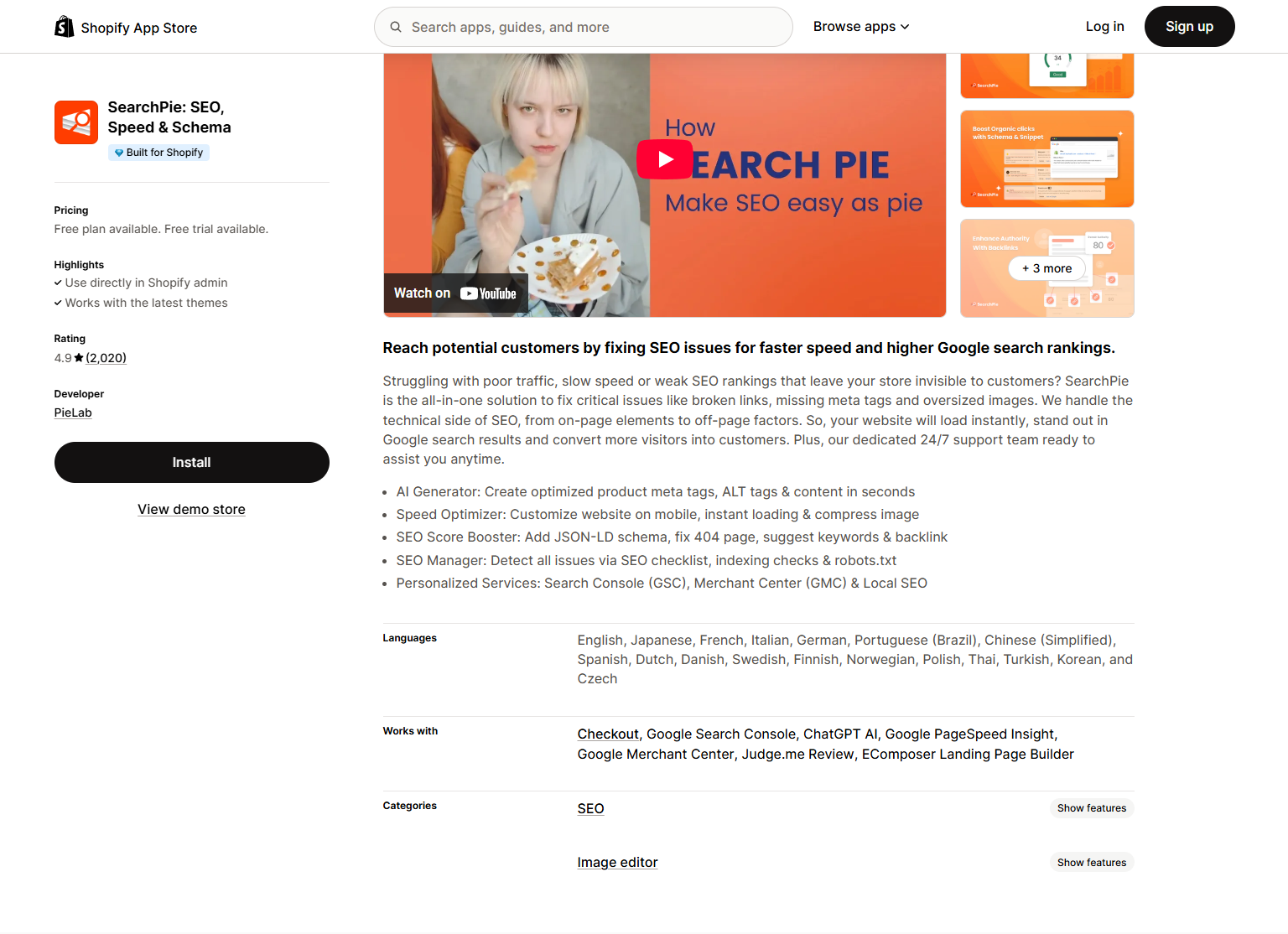 6. SearchPie: SEO, Speed & Schema