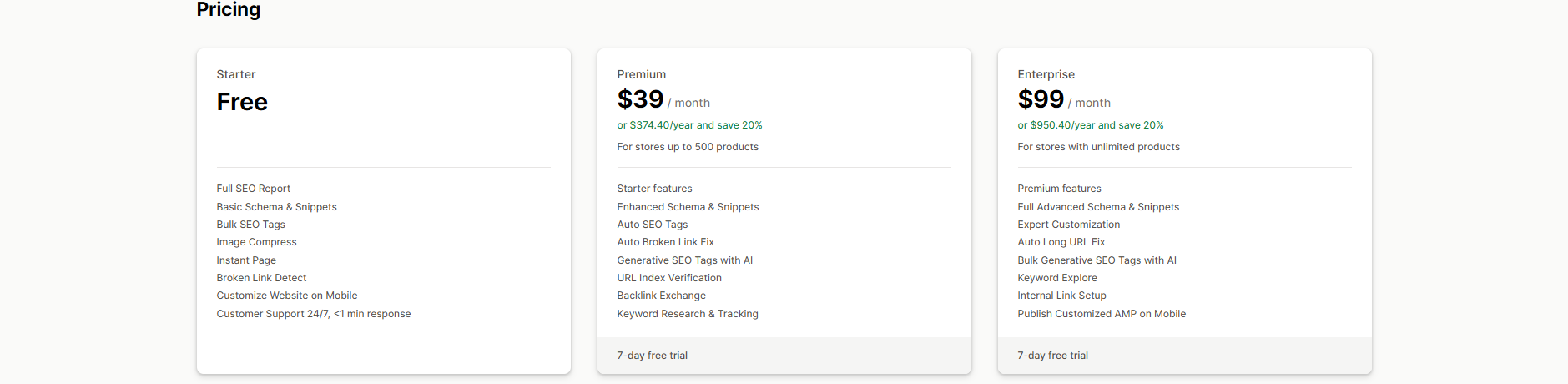 SearchPie: SEO, Speed & Schema | Fixing technical SEO issues and optimizing images | $0 (Free plan available) | Yes | 4.9 |
